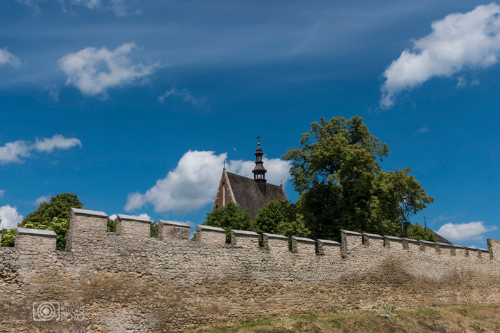 Szydłów nazwany „Carcassonne”, ze względu na średniowieczny charakter obronny. Mury wykonane z lokalnego wapienia w XIV w. mierzyły pierwotnie 1080 m długości do 1,8 m szerokości. Król Kazimierz Wielki otoczył nimi miasto, i miały trzy bramy. Dzisiaj o swej świetności przypomina brama Krakowska. Król rezydencję królewską przekształcił w zamek. Zamek wzniesiono w połowie XV wieku, a główny budynek zamkowy ma dwa piętra, po lewej stronie dziedzińca. Górna kondygnacja zwana jest Salą Rycerską. Zajrzyjcie też na dolne piętro, obejrzeć narzędzia tortur. Skarbczyk, powstały po przebudowaniu baszty obronnej w poł. XVI wieku, mieści dziś Muzeum Regionalne.Warto je obejrzeć i pogłębić swoją wiedzę historyczną z archeologicznymi i geologicznymi znaleziskami. Po zwiedzeniu zamku i przechadzki po murach, skierowałam się ku Bramie Krakowskiej, w południowej części murów, której trudno nie zauważyć. Zbudowana w XIV w., potem przebudowana w XVI w. i w końcu poddana renowacji i rekonstrukcji w 1946.